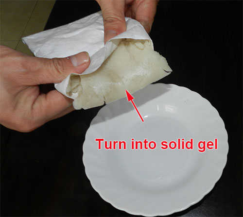 Second, fantastically, in the whole process of absorbing,the absorbent remains in solid form , no single minute turn into liquid form, from the beginning, to the full working conditions, until being saturated,